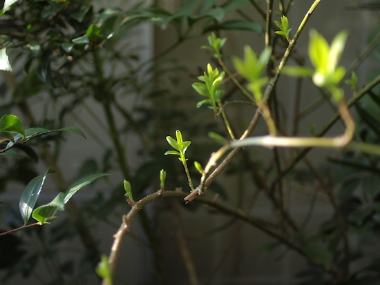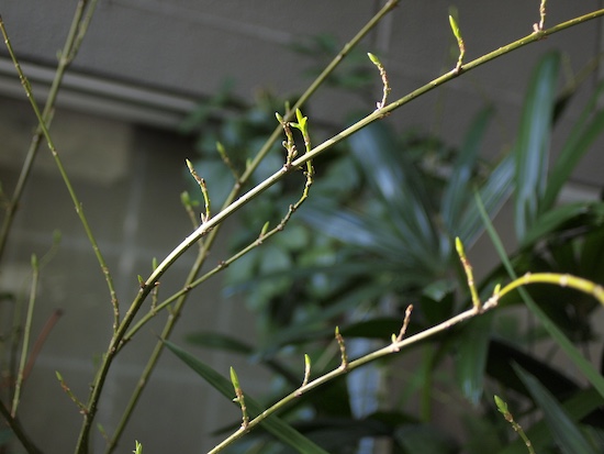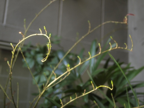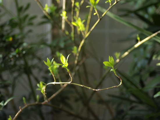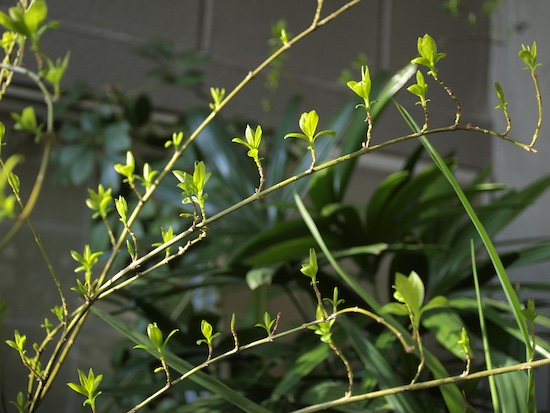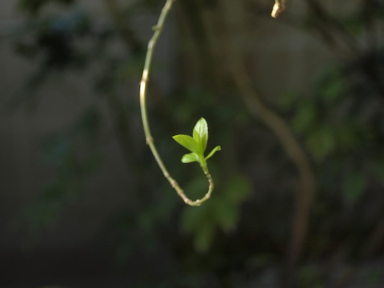 環境に配慮して、移動手段としておおむね自転車を使ってるせいか、自転車のブレーキレバーの先端から植物の新芽が発芽してきた。これも日々の行動の成果として受け止めよう!そのうち自転車全体が新芽におおわれるような事態になったら、また報告します。